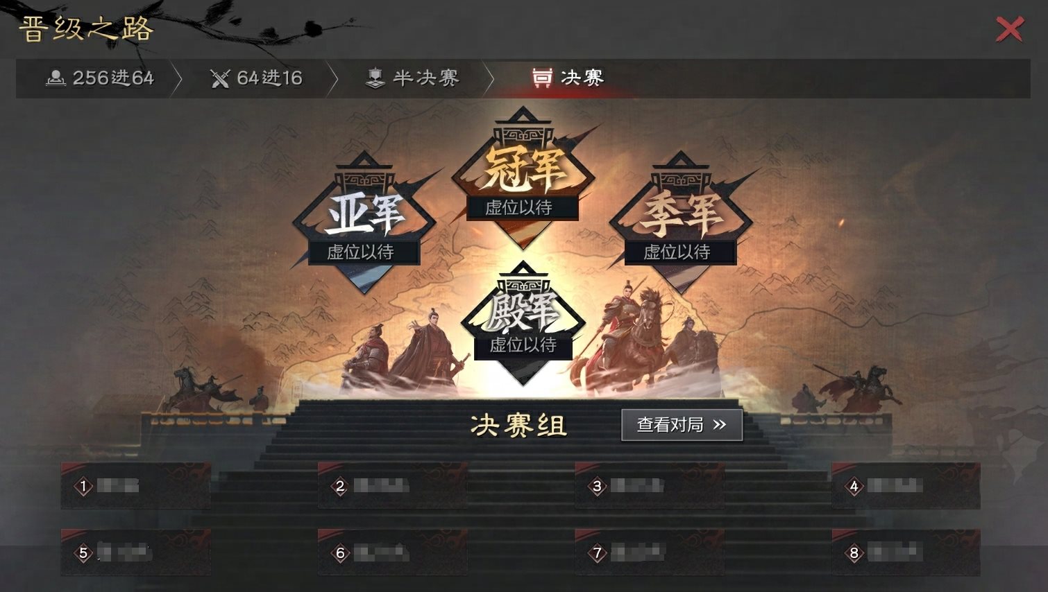 7轮比赛过后,全服范围内队伍积分前256的队伍晋级淘汰赛。