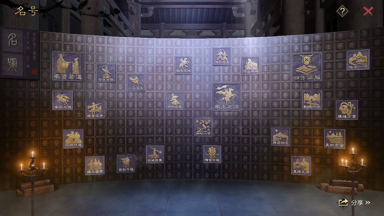 率土世界,英雄辈出。无论是南征北战的统帅、经营后方的谋主,还是合纵连横的外交家,每位主公都书写了自己的传奇。为了让各位主公更好地展示自身的风采,我们将为主公们带来名号系统,一展过往雄姿。
